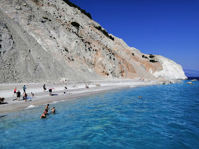 Το όνομά της προέρχεται από τα στρογγυλά λευκά της βότσαλα, που οι ντόπιοι τα αποκαλούν “Λαλάρια” . Ο βοριάς, πέφτει με μανία πάνω στους απόκρημνους ολόλευκους βράχους και δημιουργεί, εκατομμύρια χρόνια τώρα, τα ολοστρόγγυλα, λευκά βότσαλα τα "λαλάρια" τα οποία καλύπτουν όλη την παραλία.
