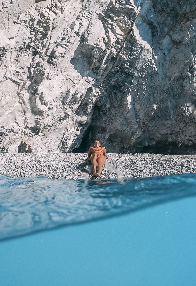 Δεν είναι μόνο η απόσταση και η ηρεμία που κάνουν την παραλία αυτή τόσο ξεχωριστή. Είναι μαζί η προσδοκία που σου γεννά η θαλάσσια διαδρομή προς τα βορειοανατολικά της Σκιάθου: το τοπίο και οι βουτιές στις μαγευτικές σπηλιές και παραλίες που θα συναντήσεις.