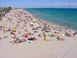 Πλατιά και αμμώδης, κατακλύζεται κάθε καλοκαίρι από πάρα πολύ μεγάλο αριθμό τουριστών.