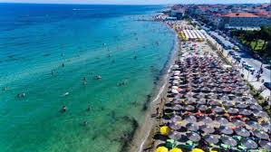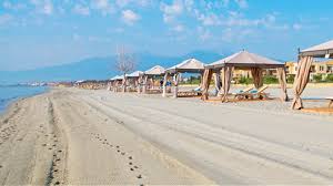 Η κοσμοπολίτικη ακτή της Παραλίας Κατερίνης, εκτείνεται σε μήκος αρκετών χιλιομέτρων με χρυσή, λεπτή, καθαρή άμμο και αβαθή θάλασσα.