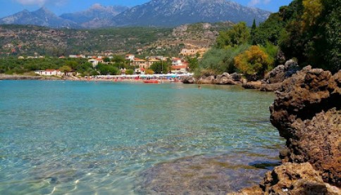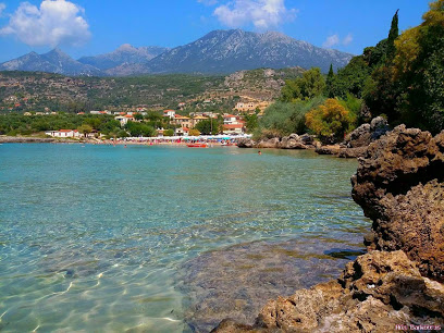Χαρακτηριστικό της παραλίας είναι τα καταγάλανα, ρηχά, παγωμένα όμως, νερά, με τις υποθαλάσσιες πηγές με νερό του Ταΰγετου να τη διατηρούν πάντα καθαρή.