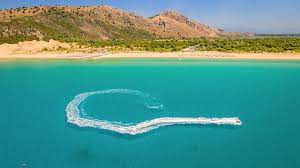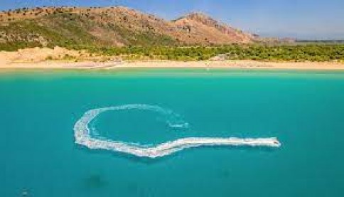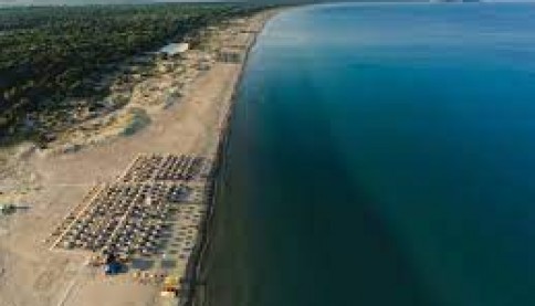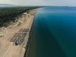 Πρόκειται για μία ειδυλλιακή και εξωτική εικόνα, χρυσής αμμουδιάς έκτασης 9 χιλιομέτρων, με γαλαζοπράσινα κρυστάλλινα νερά ενώ η φυσική ομορφιά που προσφέρει το πευκοδάσος της Στροφυλιάς (20.000 στρέμματα κατά μήκος της παραλίας).
