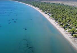 Έχει πολύ μεγάλη έκταση και βρίσκεται στην άκρη ενός κατάφυτου πευκοδάσους, του οποίου τα δέντρα φθάνουν έως την παραλία.