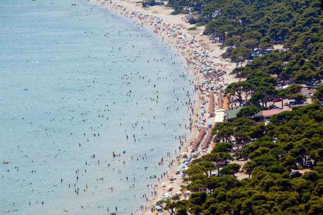Με την υποστήριξη του υπέροχου πευκοδάσους για σκιά και αρκετά καταστήματα που προσφέρουν φαγητό και καφέ, η παραλία είναι επίσης ιδανική, για ολοήμερη παραμονή.