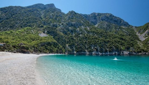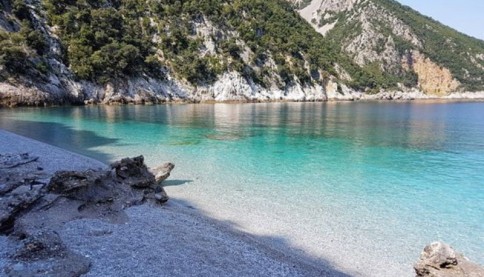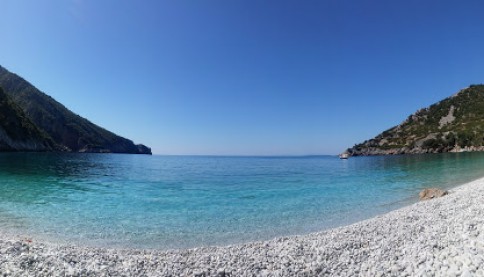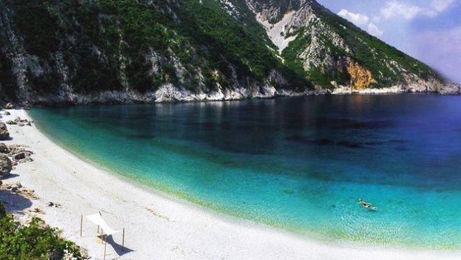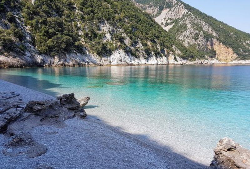 Μία υπέροχη παραλία με χαρακτηριστικό τιρκουάζ χρώμα χάρη στο καταπράσινο τοπίο που καθρεφτίζεται στα κρυστάλλινα νερά.