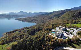 Αλπικές βουνοκορφές, άλλοτε χιονισμένες και άλλοτε καταπράσινες, στεφανώνουν το μεγαλείο της∙ ορμητικοί χείμαρροι φλερτάρουν με τις δαντελωτές της όχθες∙ πολυσχιδή φιόρδ και ένα κατάφυτο νησάκι καθρεφτίζουν τον ελατίσιο μανδύα τους στα γαλαζοπράσινα νερά. Γύρω γύρω δυο χούφτες χωριά, άλλα παραλίμνια και άλλα ορεινά, με ειδυλλιακή θέα προς την λίμνη, συμπληρώνουν ένα σκηνικό κινηματογραφικών προδιαγραφών!