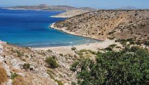 Απέναντι της βρίσκεται η νησίδα Βενέτικο και στο βάθος διακρίνεται η Σχοινούσα δημιουργώντας έτσι ένα όμορφο σκηνικό.