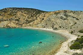 Παραλία στα νότια του νησιού με πολύ ψιλό βότσαλο.
