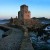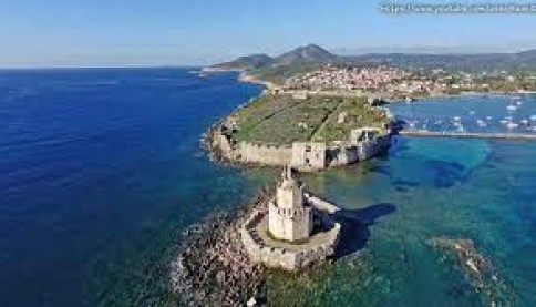 Χαρακτηριστικό αρχιτεκτόνημα της Μεθώνης είναι το Μπούρτζι, μικρό επιθαλάσσιο οχυρό, κτισμένο σε μικρή νησίδα στα νότια του κάστρου. Αποτελείται από έναν οκτάπλευρο πύργο, ο οποίος περιβάλλεται από χαμηλό οκτάπλευρο τείχος. Ο πύργος δομείται σε δύο επίπεδα και καλύπτεται με ημικυλινδρικό τρούλο. Το ισόγειο του καταλαμβάνει τετράπλευρη κινστέρνα. Κεκλιμένο επίπεδο οδηγεί τόσο στον περίδρομο του περιμετρικού τείχους όσο και στον όροφο του πύργου, όπου διαμορφώνεται αίθουσα με κανονιοθυρίδες περιμετρικά. Στους εσωτερικούς τοίχους διακρίνονται οι δοκοθήκες που θα στήριζαν τέσσερα ξύλινα πατώματα, σήμερα κατεστραμμένα. Η οικοδόμηση του οχυρού άρχισε λίγο πριν το 1500 από τους Ενετούς και ολοκληρώθηκε από τους Οθωμανούς κατά τον 16ο αιώνα. Το Μπούρτζι αποτέλεσε τμήμα της θαλάσσιας οχύρωσης της Μεθώνης και εξυπηρέτησε διάφορους σκοπούς ανά εποχές: χρησιμοποιήθηκε ως έδρα της φρουράς για τον έλεγχο του λιμανιού, ως φάρος, φυλακή, αλλά και καταφύγιο των κατοίκων σε περιόδους πολιορκίας.