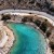 Τα γαλαζοπράσινα δροσερά νερά είναι προσβάσιμα με κατάβαση από μονοπάτια ανάμεσα στα βράχια.