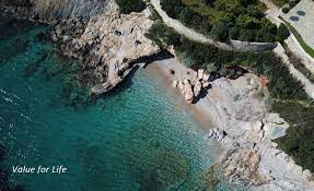 Ο μικρός κόλπος λίγο μετά το Πόρτο Ράφτη είναι καλά προφυλαγμένος από τα μελτέμια και έχει άμμο, σκιά από τα δέντρα που βρίσκονται στις άκρες του και γαλάζια νερά.