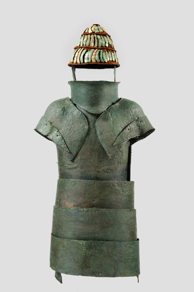 Σε ξεχωριστή προθήκη παρουσιάζεται το θέμα του πολέμου και του κυνηγιού που αποτελούσαν μέσο επίδειξης δύναμης και γοήτρου της μυκηναϊκής άρχουσας τάξης.